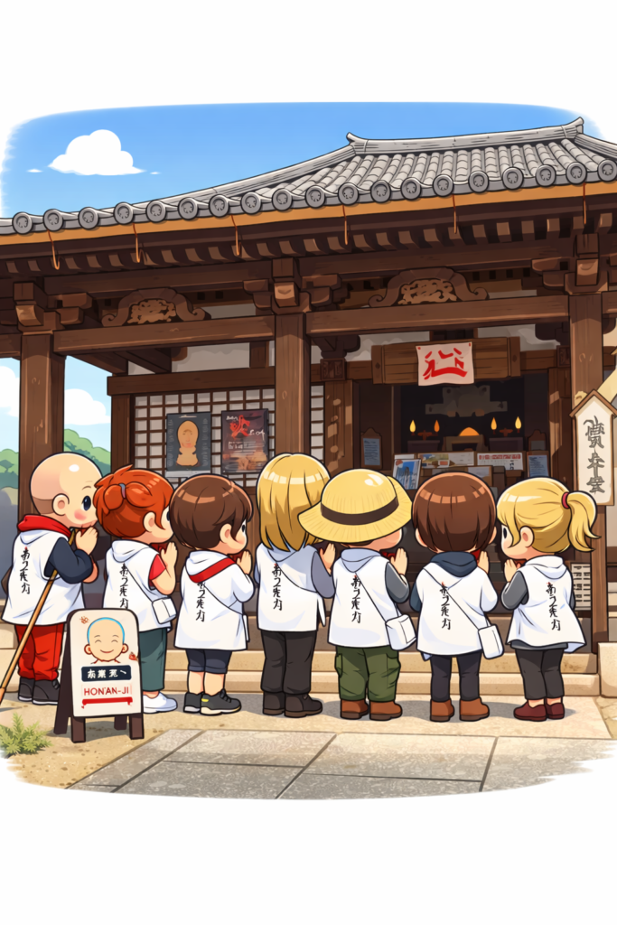 下の絵のように、外国人のお遍路さん達が参拝されていました。ちゃんと作法・礼節をもった参拝に目を奪われてしまいましたw