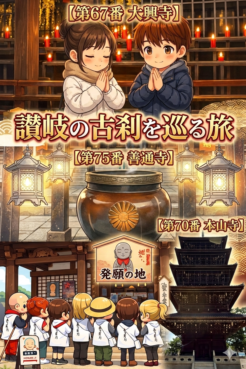 善通寺の広大な伽藍から始まり、国宝・本山寺、そして静寂の大興寺へ。今回の讃岐路は、お遍路の「表舞台」と「奥深い歴史」を同時に味わえる贅沢なルートとなりました。