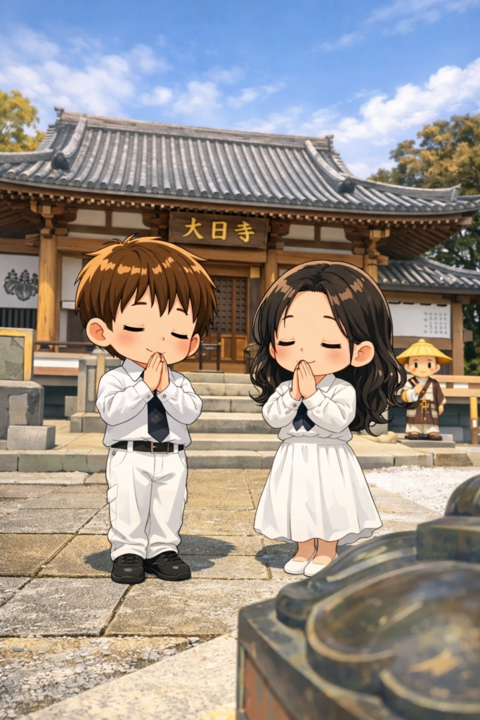 ご本尊は、宇宙そのものを身体とすると言われる「大日如来(金剛界大日如来)」。インドの言葉で「マハーヴァイローチャナ(偉大な光り輝く者)」の名を持つこの仏様を前に、静かに真言「オン バザラダド バン」を唱えると、心がすっと整うような感覚に包まれます。